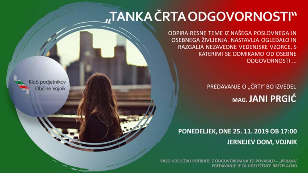 Predavanje TANKA ČRTA ODGOVORNOSTI, 25.11.2019 ob 17:00, predavatelj mag. Jani Prgić